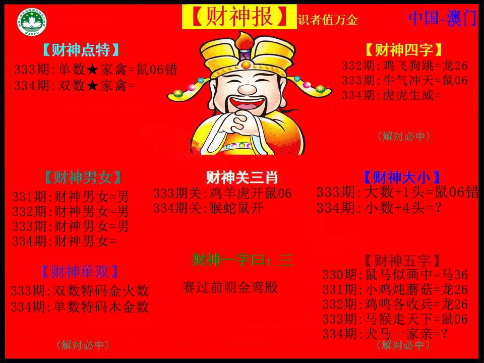 | 334期四肖 | 马鼠羊猴 | 猫00准 |